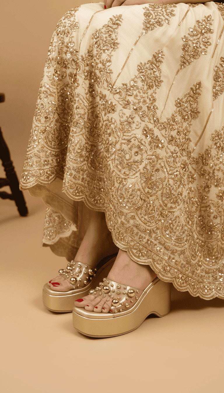 Experience height and comfort with our gold wedges for women. Perfect for outdoor events, weddings, and all-day wear.